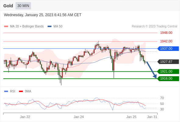 在 1937.00 之下,看跌,目标价位为 1921.00 ,然后为 1916.00 。