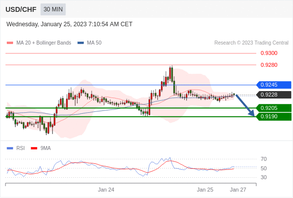 在 0.9245 之下,看跌,目标价位为 0.9205 ,然后为 0.9190 。