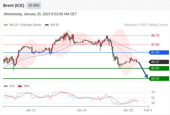 在 87.20 之下,看跌,目标价位为 85.80 ,然后为 84.90 。