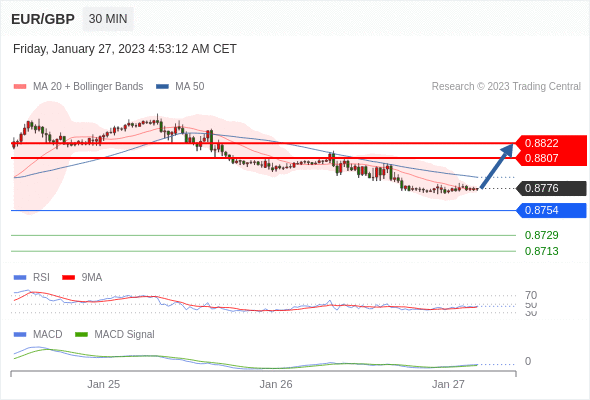 如跌破 0.8754 ,EUR/GBP 目标方向定在 0.8729 和 0.8713 。