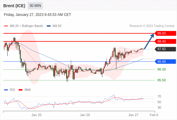 在 86.90 之上,看涨,目标价位为 88.40 ,然后为 89.00 。