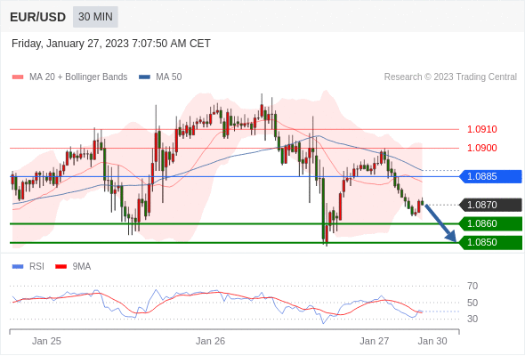在 1.0885 之下,看跌,目标价位为 1.0860 ,然后为 1.0850 。