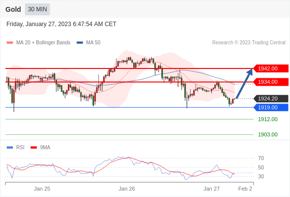 在 1918.00 之上,看涨,目标价位为 1934.00 ,然后为 1942.00 。