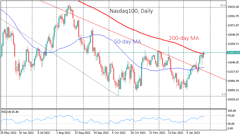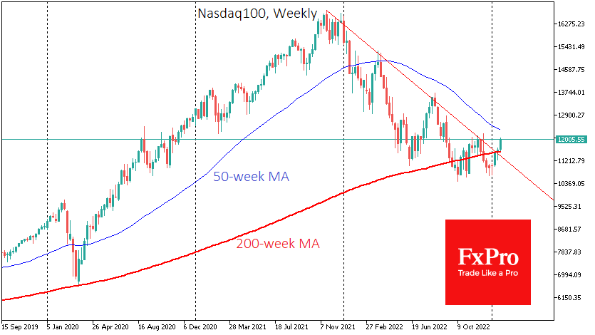 这些怀疑是有依据的。该指数在三周内上涨了约13%,回到了去年12月的高点,当时的涨幅已大幅放缓:周三的下跌已被买断,但在12,000点左右的波动仍在继续。200日平均线已被大幅突破。