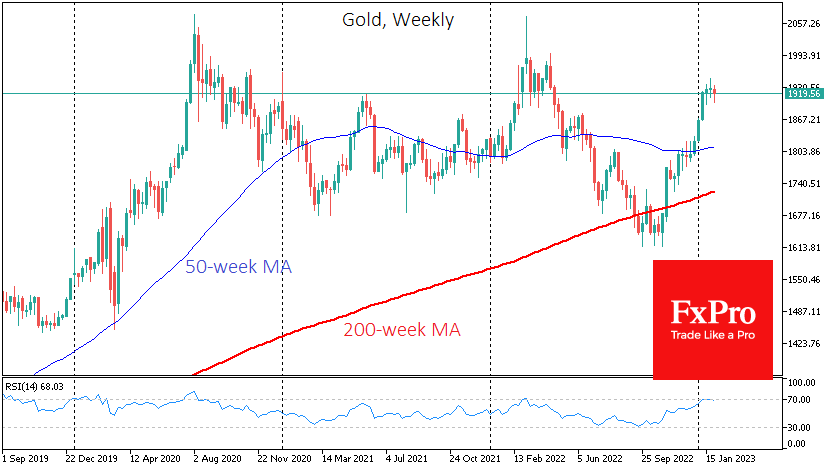 黄金在周线上也超买,这几乎总是导致这一区域的突然逆转或长期停滞。