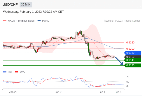 在 0.9180 之下,看跌,目标价位为 0.9145 ,然后为 0.9120 。