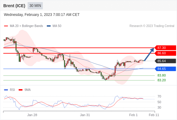 在 84.65 之上,看涨,目标价位为 86.60 ,然后为 87.30 。