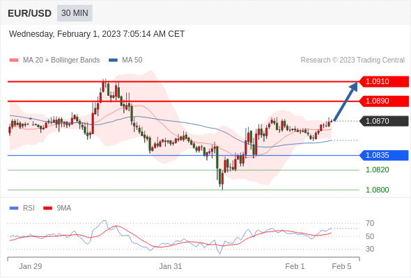 在 1.0835 之上,看涨,目标价位为 1.0890 ,然后为 1.0910 。
