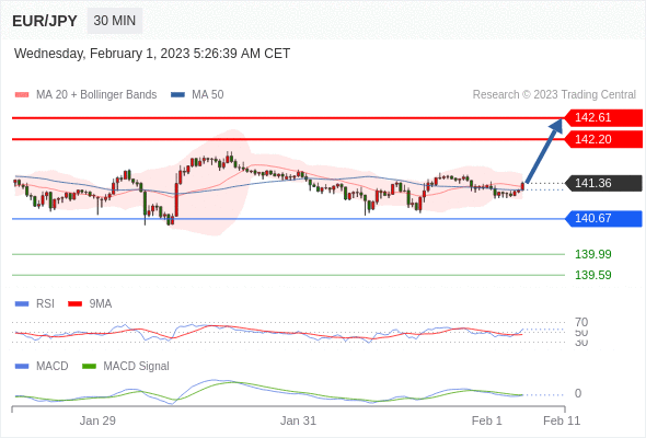 欧元/日元 当日内: 调整至 140.67 处,在反弹上升之前。