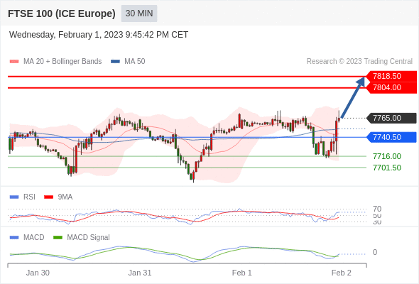 英国富时100指数期货 当日内: 看涨,当 7740.50 未被跌破。