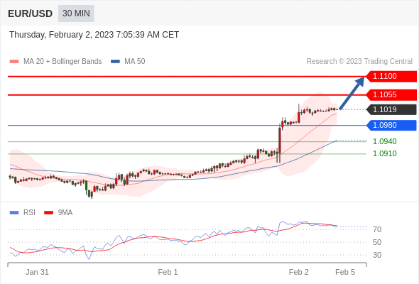 在 1.0980 之上,看涨,目标价位为 1.1055 ,然后为 1.1100 。