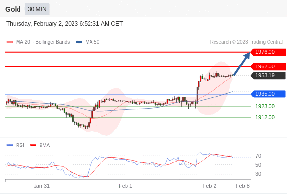 在 1935.00 之上,看涨,目标价位为 1962.00 ,然后为 1976.00 。