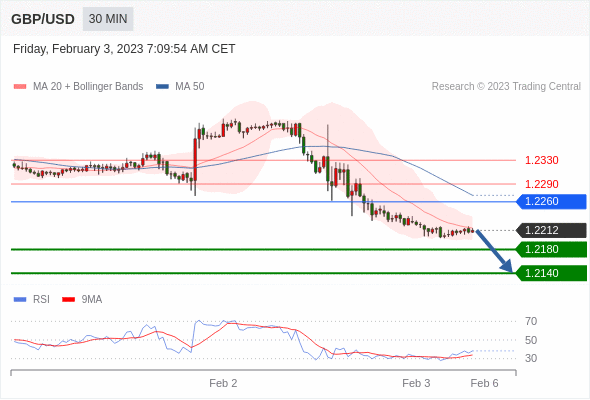 在 1.2260 之下,看跌,目标价位为 1.2180 ,然后为 1.2140 。