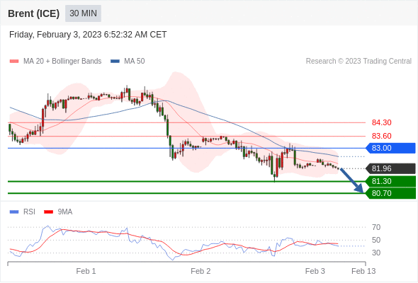 在 83.00 之下,看跌,目标价位为 81.30 ,然后为 80.70 。