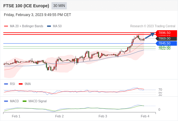 如跌破 7845.50 ,英国富时100指数期货 目标方向定在 7831 和 7822 。