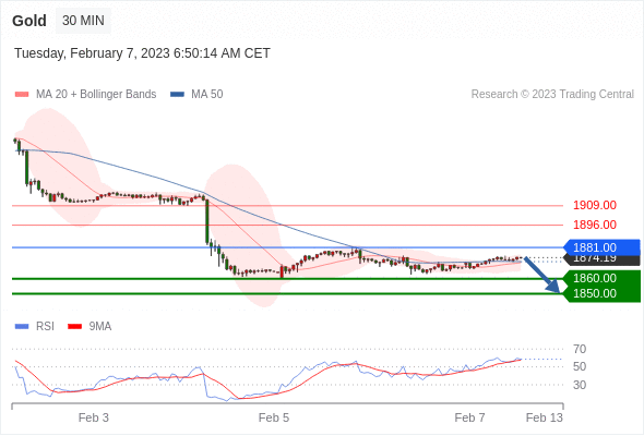 在 1881.00 之下,看跌,目标价位为 1860.00 ,然后为 1850.00 。