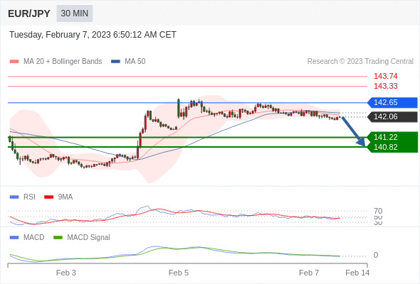 欧元/日元 当日内: 看跌,在 142.65 之下。