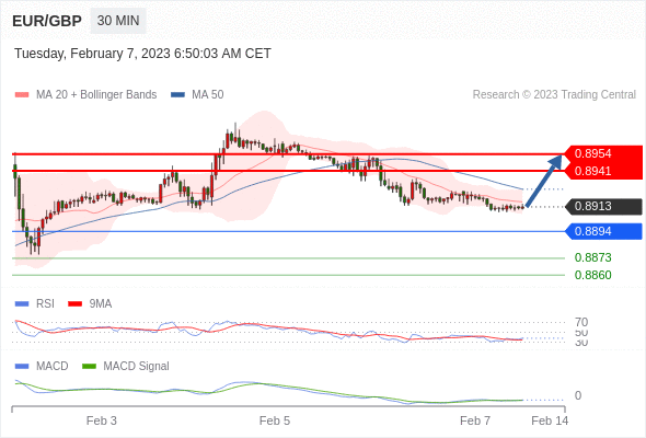 欧元/英镑 当日内: 有上涨的可能,目标价位定在 0.8954 。