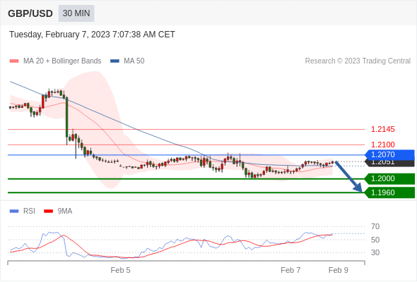 在 1.2070 之下,看跌,目标价位为 1.2000 ,然后为 1.1960 。
