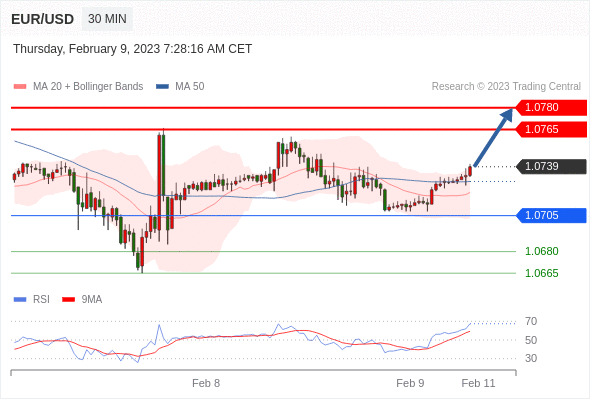 在 1.0705 之上,看涨,目标价位为 1.0765 ,然后为 1.0780 。