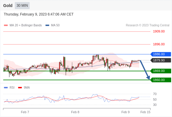 在 1886.00 之下,看跌,目标价位为 1869.00 ,然后为 1860.00 。