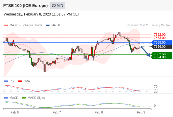 英国富时100指数期货 当日内: 看跌,在 7868.50 之下。