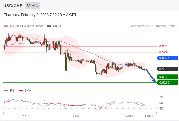 在 0.9225 之下,看跌,目标价位为 0.9175 ,然后为 0.9160 。