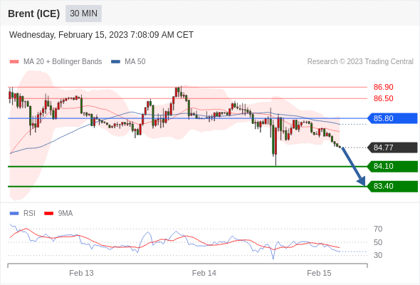 在 85.80 之下,看跌,目标价位为 84.10 ,然后为 83.40 。