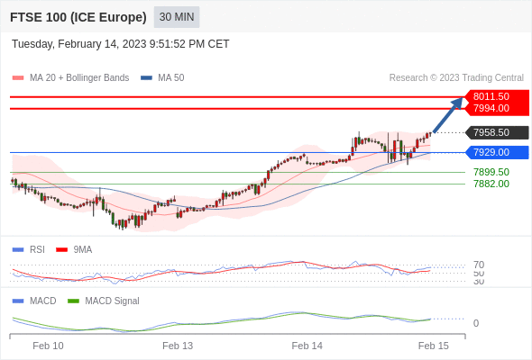 如跌破 7929 ,英国富时100指数期货 目标方向定在 7899.50 和 7882 。