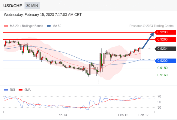 在 0.9200 之上,看涨,目标价位为 0.9260 ,然后为 0.9280 。