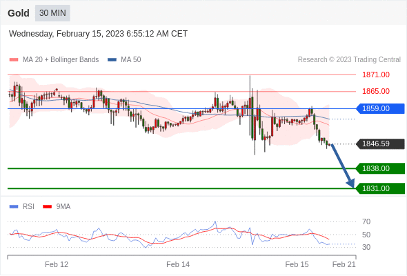 在 1859.00 之下,看跌,目标价位为 1838.00 ,然后为 1831.00 。