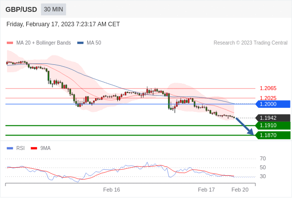在 1.2000 之下,看跌,目标价位为 1.1910 ,然后为 1.1870 。