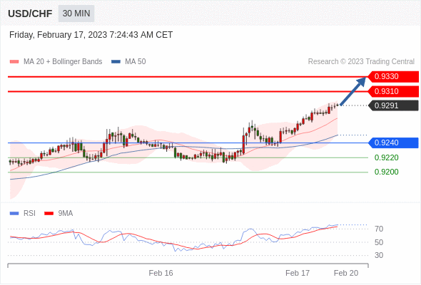 在 0.9240 之上,看涨,目标价位为 0.9310 ,然后为 0.9330 。