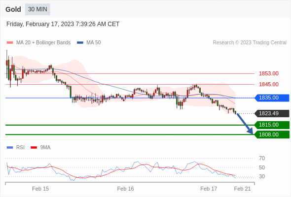 在 1835.00 之下,看跌,目标价位为 1815.00 ,然后为 1808.00 。