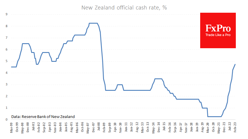 FxPro高级分析师Alex?Kuptsikevich指出:在同期的一篇评论文章中,该行预测今年9月将加息至5.5%,这为随后的会议进一步加息留下了相当大的空间。即便如此,新西兰目前的利率仍处于2008年以来的最高水平。在全球金融危机后开始的“零利率时代”之前,5%以上的利率是常态。因此,预期利率完全在正常范围内。此外,新西兰储备银行预计现金利率将在晚些时候下降。