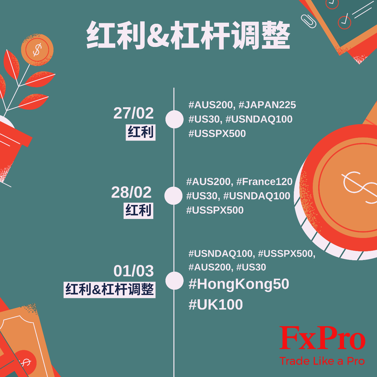 温馨提示,本周FxPro提供的部分产品的红利和杠杆调整如下:
