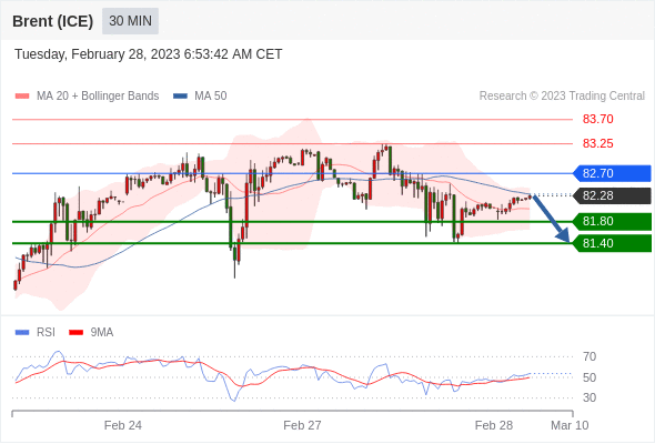 在 82.70 之下,看跌,目标价位为 81.80 ,然后为 81.40 。