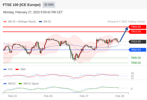 如跌破 7892.50 ,英国富时100指数期货 目标方向定在 7865 和 7848.50 。