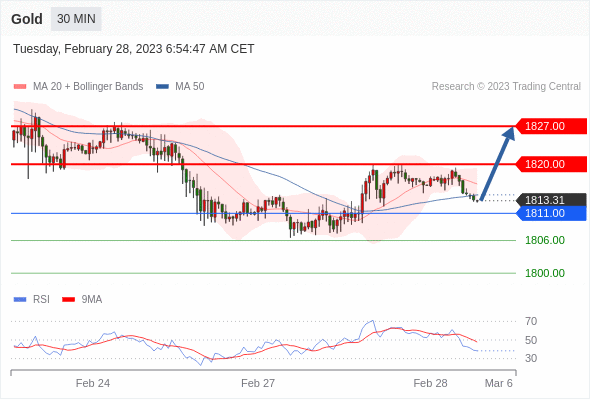 在 1811.00 之上,看涨,目标价位为 1820.00 ,然后为 1827.00 。