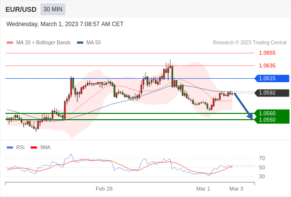 在 1.0615 之下,看跌,目标价位为 1.0560 ,然后为 1.0550 。