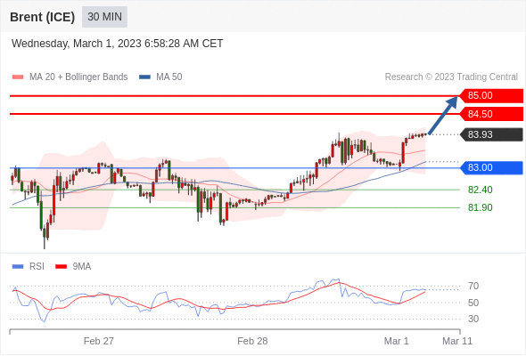 在 83.00 之上,看涨,目标价位为 84.50 ,然后为 85.00 。