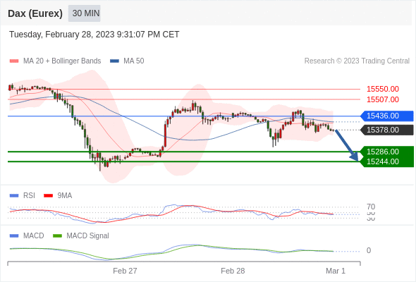 德国DAX指数期货 (Eurex)? 当日内: 看跌,在 15436.00 之下。