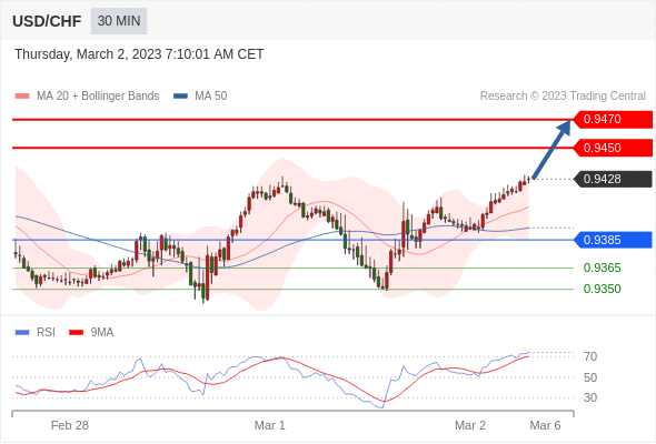 在 0.9385 之上,看涨,目标价位为 0.9450 ,然后为 0.9470 。