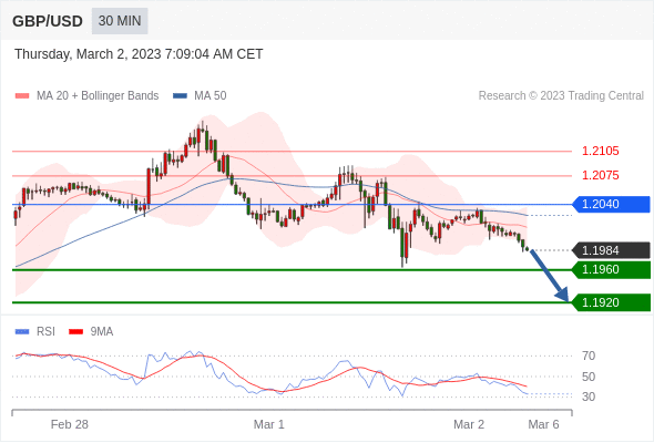在 1.2040 之下,看跌,目标价位为 1.1960 ,然后为 1.1920 。