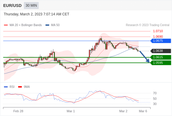 在 1.0675 之下,看跌,目标价位为 1.0615 ,然后为 1.0595 。