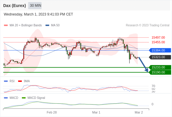 德国DAX指数期货 (Eurex)? 当日内: 看跌,在 15384.00 之下。