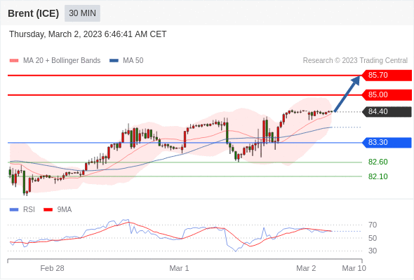 在 83.30 之上,看涨,目标价位为 85.00 ,然后为 85.70 。