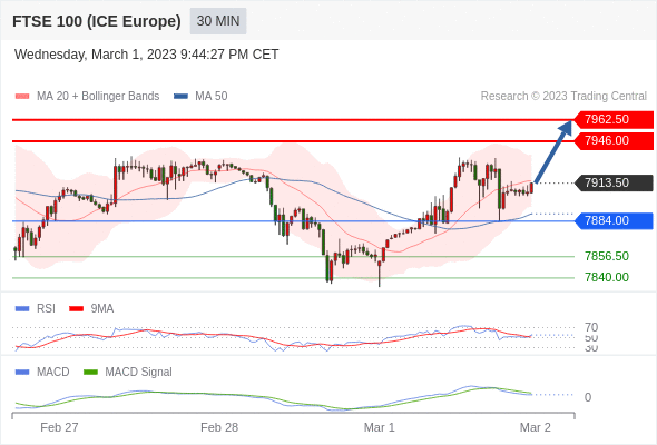 如跌破 7884 ,英国富时100指数期货 目标方向定在 7856.50 和 7840 。