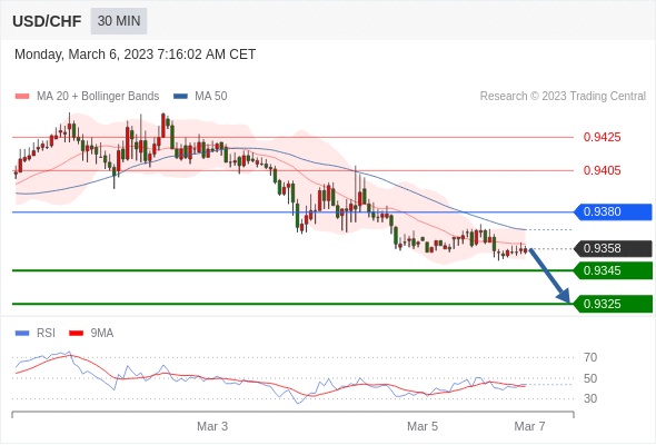 在 0.9380 之下,看跌,目标价位为 0.9345 ,然后为 0.9325 。