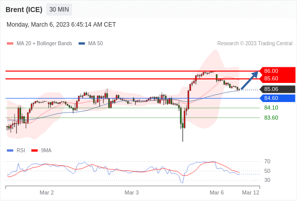 在 84.60 之上,看涨,目标价位为 85.60 ,然后为 86.00 。